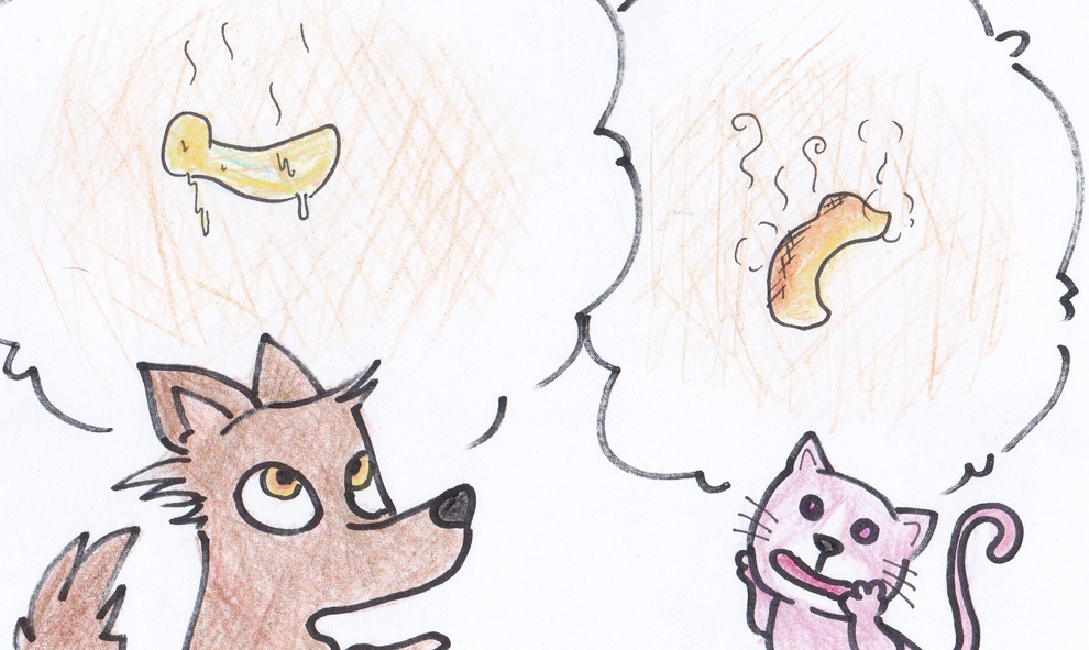 迷理貓與狼狼撿到一個外形很像香蕉的石頭,剛好石頭的凹槽也很像香蕉, 這香蕉石頭體積有點大,二位花了很大的力氣,才把石頭搬到歐爾村的莓果大樹下, 即使累得癱在莓果樹下休息,迷理貓與狼狼仍開心的討論要怎麼使用它。
