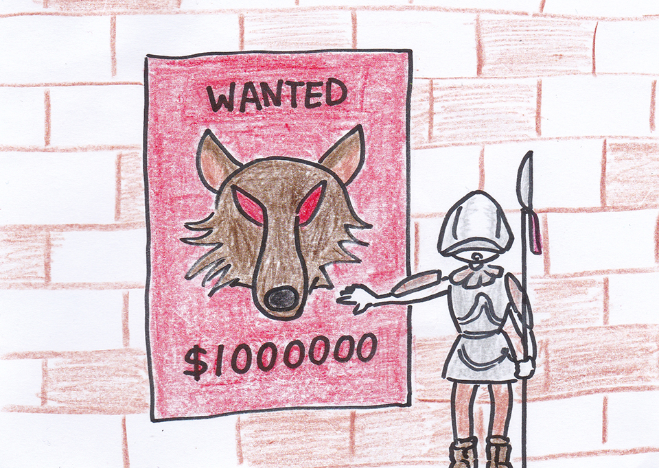 某天,一個帶著斗篷的人,來到國王面前獻策一個計謀, 國王聽完後,高興的讓那帶著斗篷的人去佈置陷阱,同時吩咐侍衛貼文公告: