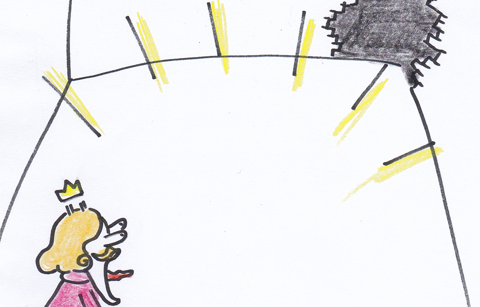 傑克帶著米米爬上城牆,沿著走廊前進, 並吩咐米米偷偷潛進王宮內,探察警衛出沒的方位,回報給傑克, 就這樣傑克小心翼翼的往寶物庫前進,一路順暢,平安無事。