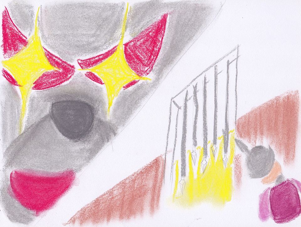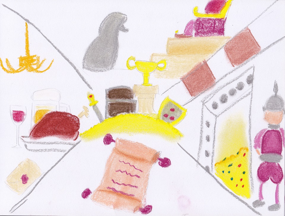 當傑克進入寶物庫時,眼睛亮了起來, 這一大批奇珍異寶,可以賣不少錢,買很多糧食來救助人民吶, 正當傑克沉浸在興奮又開心的情緒時, 寶物庫大門卡的一聲,關起來了!