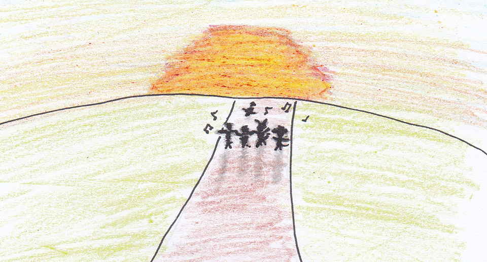 5個人邊跳邊回家。