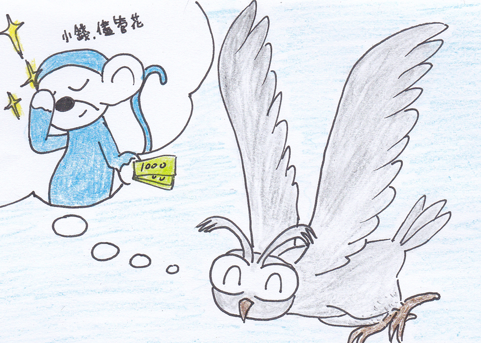 歐爾興沖沖的飛去找藍懶猴借錢囉。