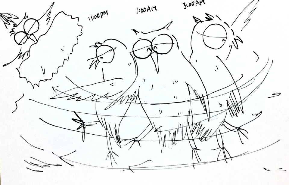 整個晚上,歐爾翻來翻去無法閣上眼,終於在3點時睡著了。