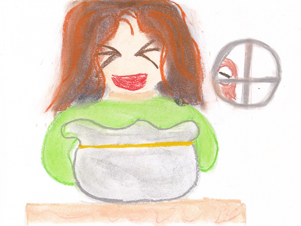 歐耶:「恩,歐爾哼哼唱唱的不曉得在做什麼?(從窗戶偷看)