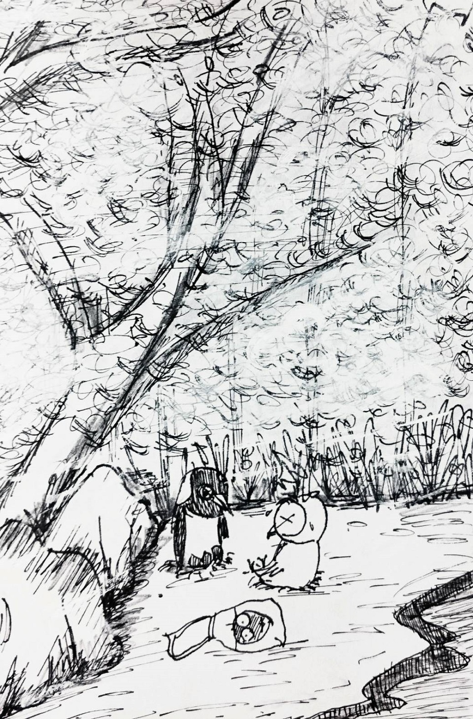 歐爾村內一團混亂。 歐爾的失心瘋愈來愈嚴重。 他不是拿石子砸破村民的窗戶,就是拿水柱攻擊村民。 要不就是把食物吃了又吐出來,隨手亂扔食物殘渣。 搞得到處臭氣薰天丶蟑螂橫行。 村民都傷透腦筋,若要將歐爾五花大綁又覺得太過殘忍,畢竟他是村長; 但若不限制他的行動,又得24小時輪流照看。 大家都不曉得該如何處置瘋狂的村長,只能盼望小傘快點回來。 ---------------------------------------------------未完,待續。